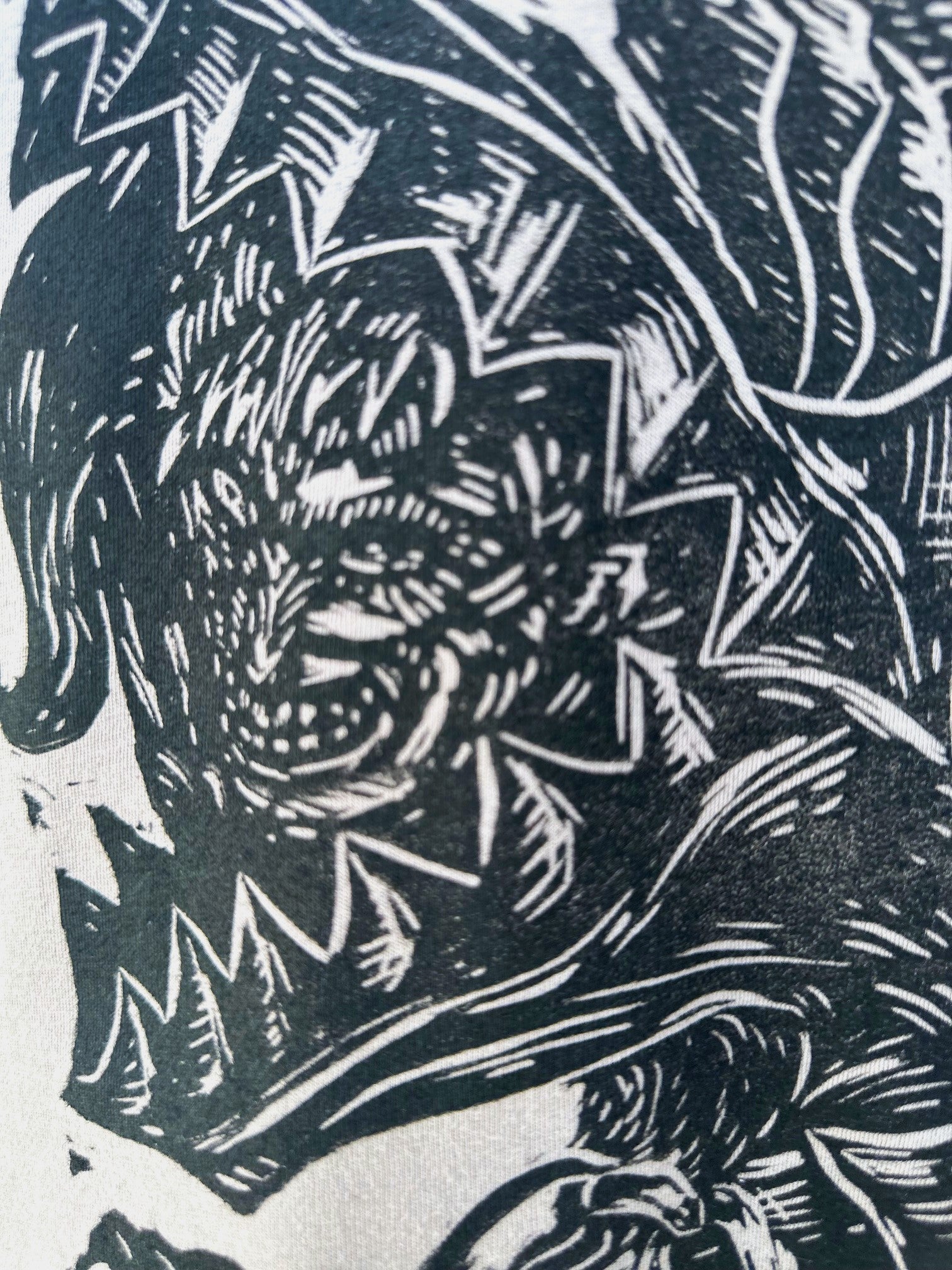 This is a hand carved, hand printed design onto high quality Bella+Canvas fabric. The shirts are unisex and 100% cotton.