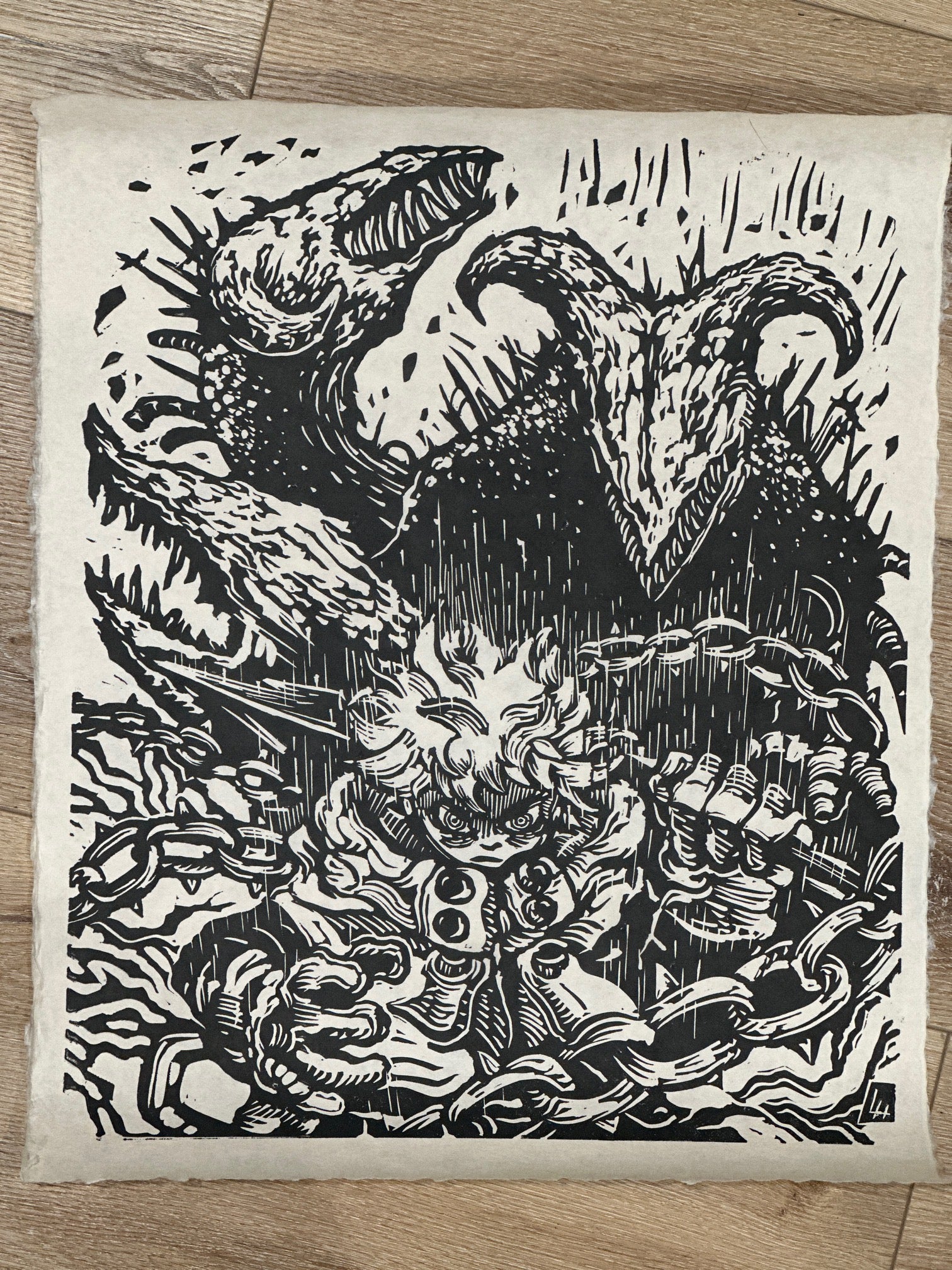 Hand printed on ~17x20" 30gsm kitakata Japanese rice paper.