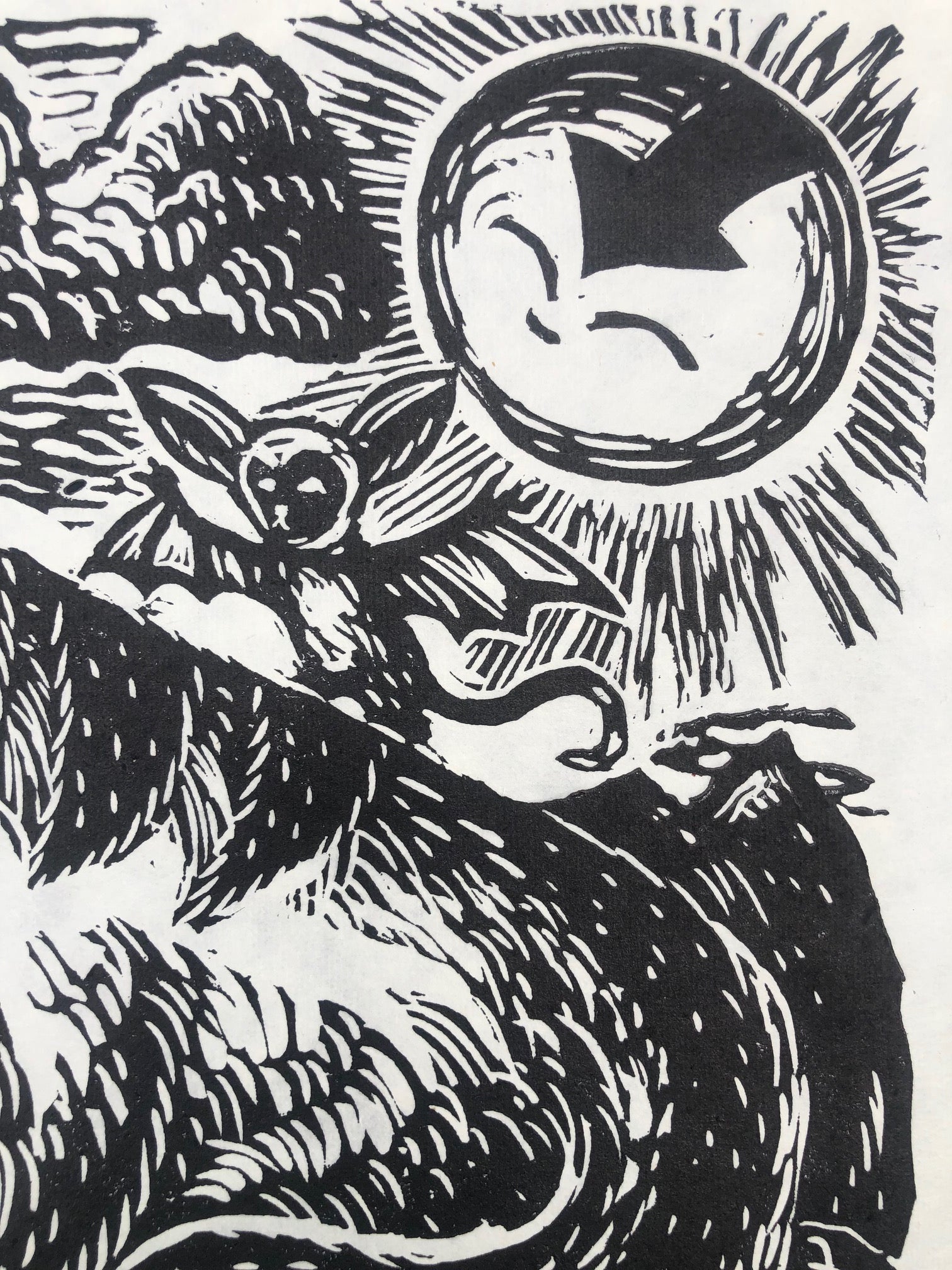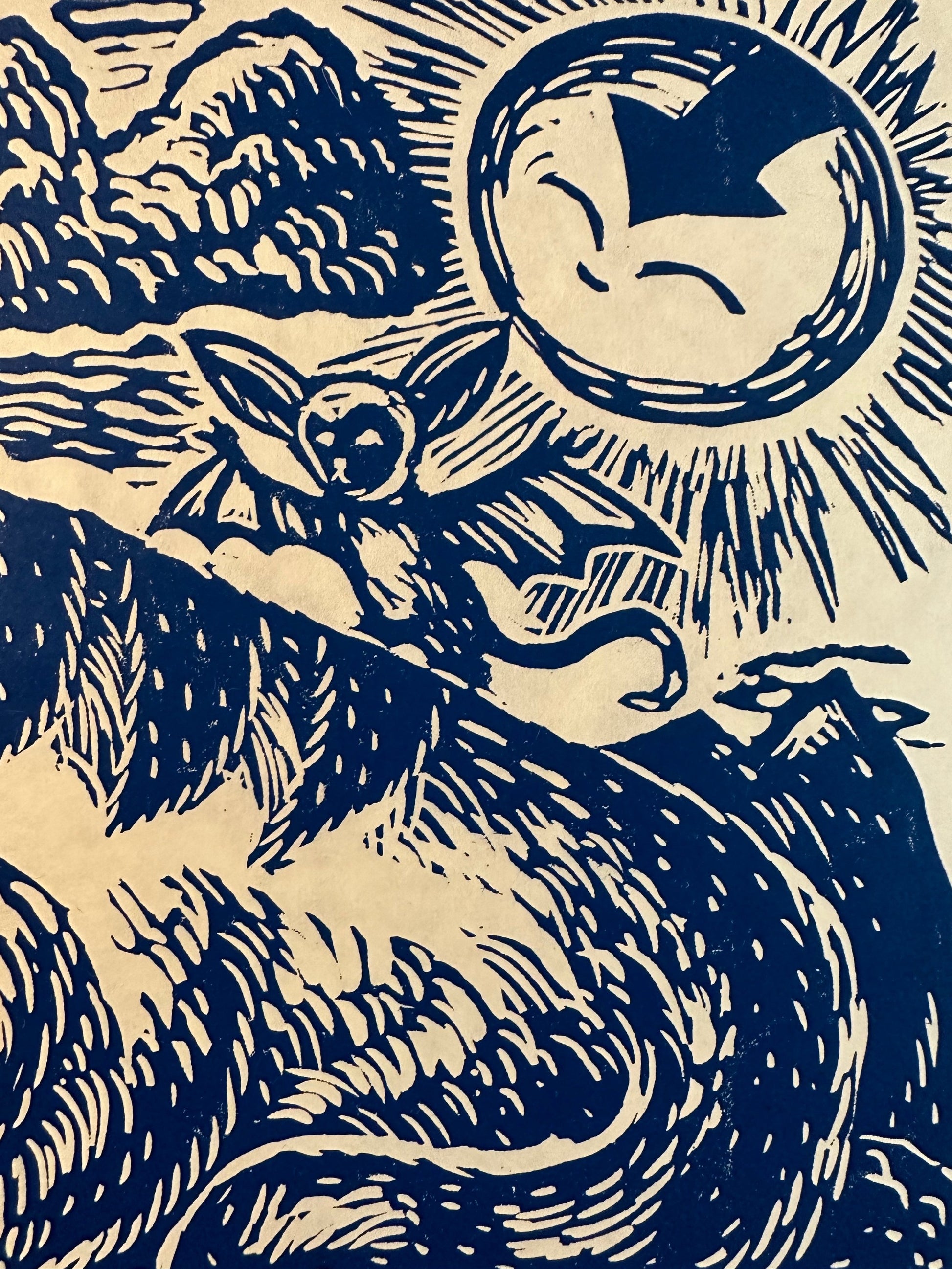 Note: All blocks are inked and pressed by hand, so each print contains slight variances in color and texture, and may show faint indentations in the margins where the paper was pressed over the edges of the block. This makes every print truly unique!