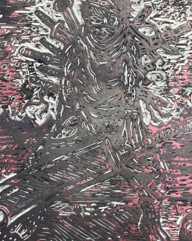 Hand printed on ~10.5x12.5" 30gsm kitakata rice paper. Signed and numbered edition of 30.