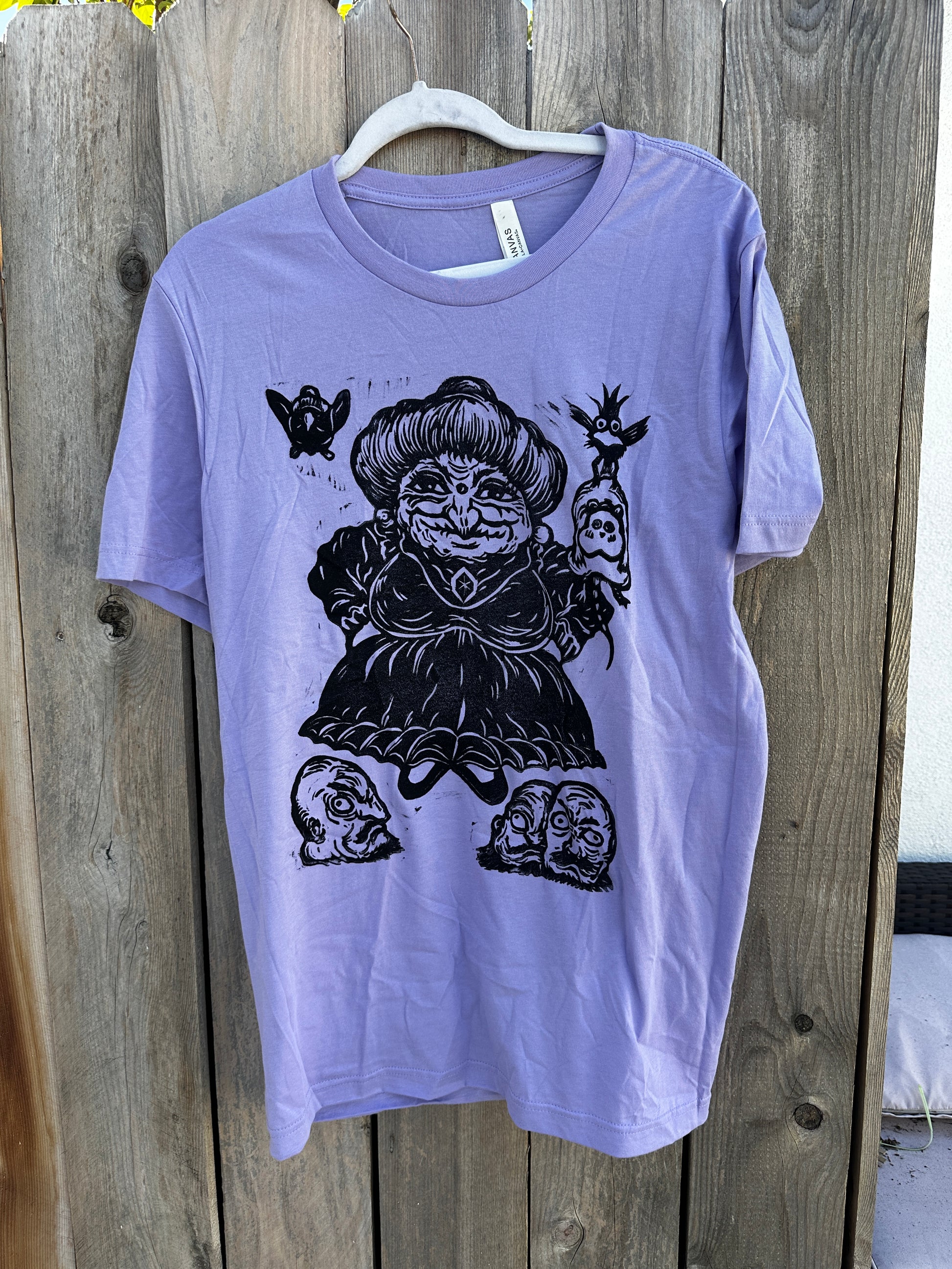 This is a hand carved, hand printed design onto high quality Bella+Canvas fabric. The shirts are unisex and 100% cotton.